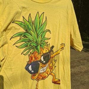 Brighten up your wardrobe with this fun yellow t-shirt featuring a cool pineapple graphic. Perfect for casual outings or any occasion.