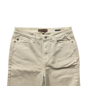 Judy Blue Women's Khaki Tan Straight Fit Jeans Frayed Ankle Bottom Sz 13/31