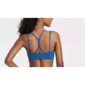WT JoyLab Women's L Deep Sea Blue Strappy Athletic Sports Bra Removable Pads