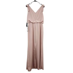 Adrianna Papell Women's Blush Ribbon Shoulder Cowl Neck Formal Maxi Dress Sz 10