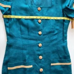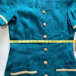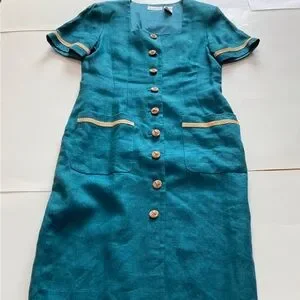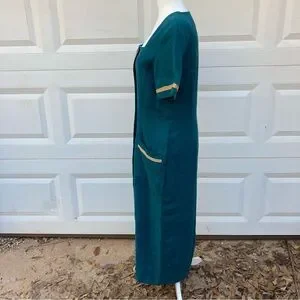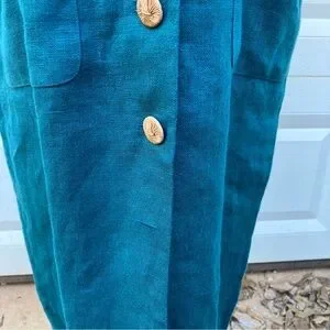 Liz Claiborne Vintage Linen Maxi Dress Womens 10 Green 90s Button Front Pockets