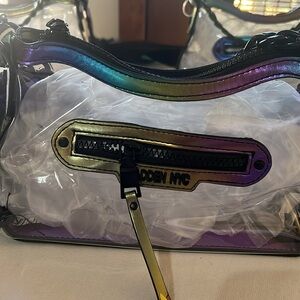 This stylish iridescent hobo bag is perfect for adding a touch of flair to any outfit. Its unique color shifts beautifully in the light, making it a standout accessory.