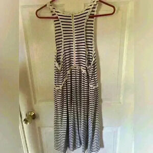 Women’s, size small, zip up sundress, fun lacy trim, black & white stripes. 38 inches long. POL brand