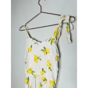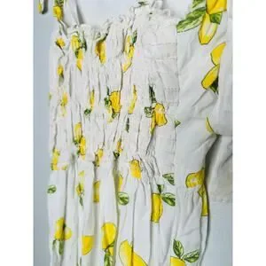 SLATE & WILLOW Yellow White Lemon Print Sweetheart Neckline Midi Dress Size XS