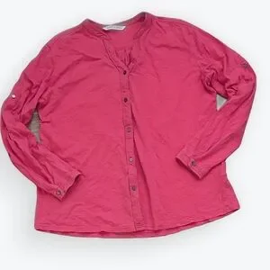 This is the perfect transitional piece! Wear it as a top with changeable length of sleeves using the button tab, or wear it as a lightweight jacket. One tiny hole found near wearer’s left underarm, approximately the size of a pinhead, but otherwise in great condition.