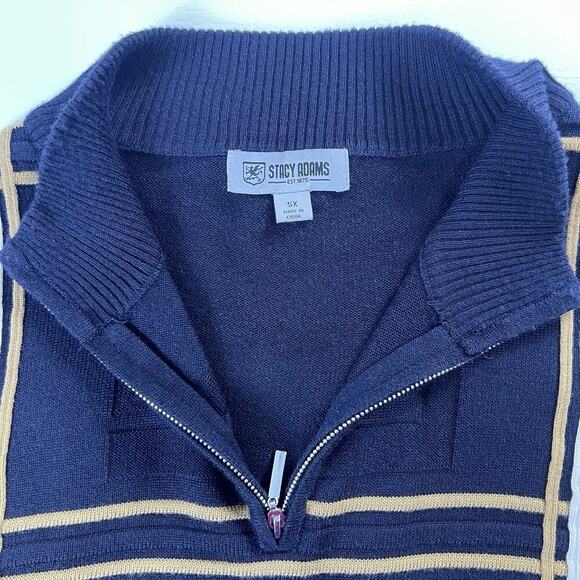Stacy Adams Men's Vintage 1/4 zip Pullover Sweater Blue With Stripes Warm Sz.5X