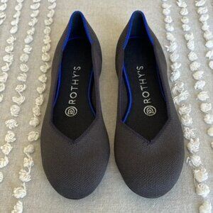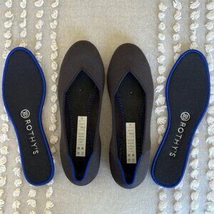 The Flat by Rothy’s in black. Excellent condition! No flaws as far as I can tell. Washable shoes (please see washing instructions in the last photo)
