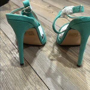 Elevate your style with these striking teal heels from Fashion Nova, featuring a sleek stiletto heel and elegant ankle straps. The minimalist design and luxurious finish make them perfect for formal occasions, adding a touch of sophistication to any outfit.