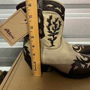 Brown and Cream Ankle Boots with Western Embroidery cactus women 8.5