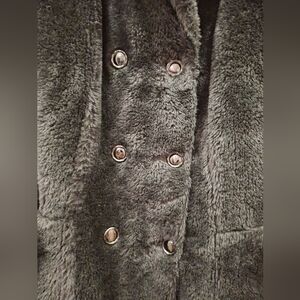 This is a beautiful, vintage, faux fur, double breastfed, women's coat . It is very old but in beautiful, wearable condition. There are no tags, so please pay attention to the measurements.