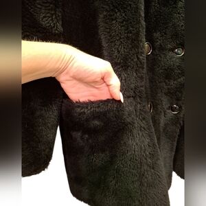 "Vintage"Black Faux fur Double breasted Lapeled and heavy lined Coat. No tags