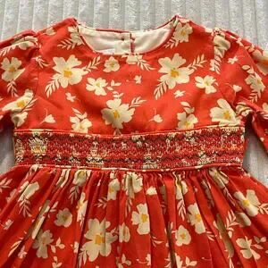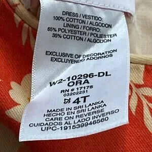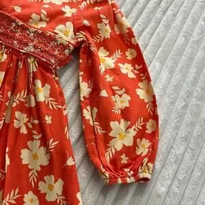 Bonnie Jean Girls Floral Dress Long Sleeve Size 4T Orange Embroidered Beach Tie