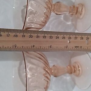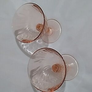 Set of two elegant rosaline pink swirl optic glasses. 4 5/8"h x 4"w Perfect for special occasions. Serve desserts, shrimp, drinks, etc.