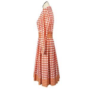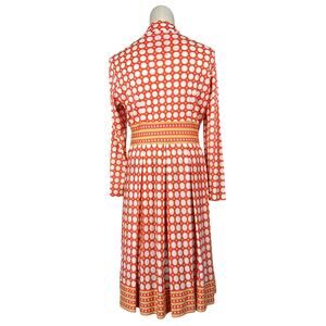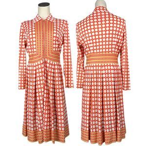 Vintage 70s Orange Polka Dot Collared Long Sleeve Front Zip Retro Midi Dress S