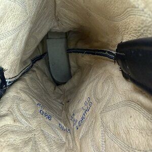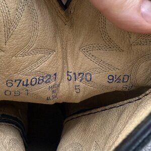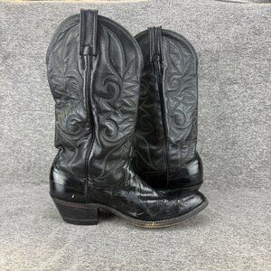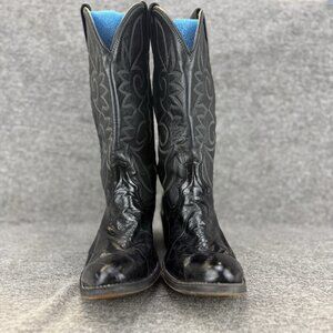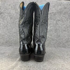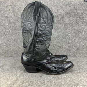 ✅ Mens 9.5D VTG Cowboy Boots Black Leather Almond Toe Embroidered Made In USA