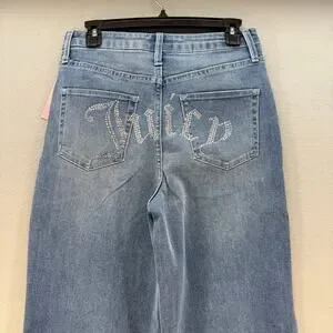 Juicy Couture Jeans Women's 7/28 Blue Lunita Wide Leg Rhinestone Logo Flare NWT