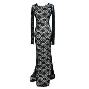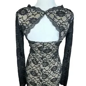 Windsor Whimsigoth Maxi Dress, size medium Black Lace over nude underlay.