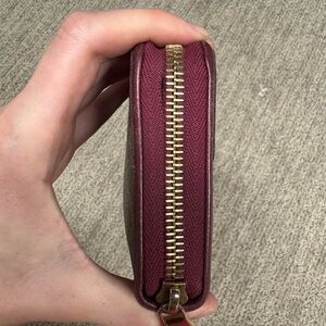 Preloved zippy wallet, shows some signs of wear around the zipper area especially, corners, some rubbing on canvas, etc. So please review photos carefully before purchasing since there are no returns. Can ship asap!
