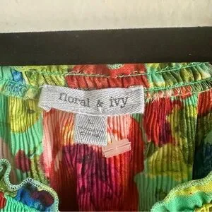 Floral & Ivy Vibrant Floral Lightweight Stretchy Ruffled 3/4 Sleeve Blouse Sz L