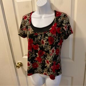 Sag Harbor Black Top with Red Floral Design excellent condition.