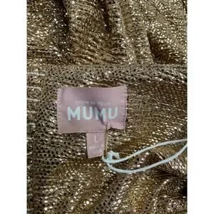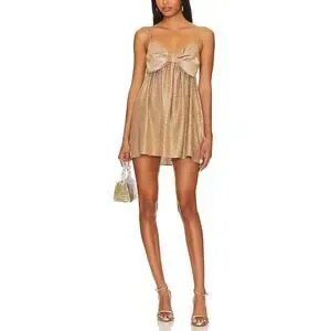 Show Me Your Mumu Best Bow Tan Polyester Mini Dress Size L: unlined, pull-on styling, front bow detail, lightweight lam� fabric.