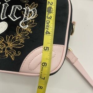 Juicy Couture Liquorice Heritage Crossbody Black And Pink Velour Bag Purse NEW
