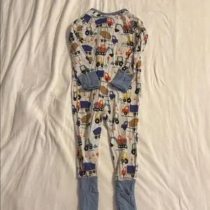 This adorable kids' one piece features a fun construction print with vibrant colors. Perfect for little builders, it offers comfort and style.