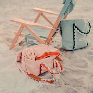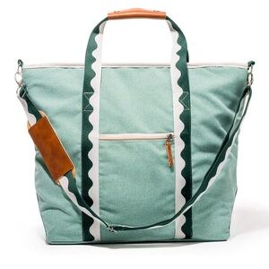 NWT Elegant tote with scalloped trim. A Cooler Tote Bag for a day out with family and friends with space for all the picnic essentials and more. Adjustable shoulder strap plus front pocket for essentials. Features a blue and white color scheme. Only out of bag for photos