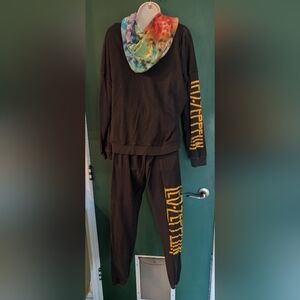 Lauren Moshi Led Zeppelin Black Hoodie with Angel Tie-Dye Hood Crystal Embel