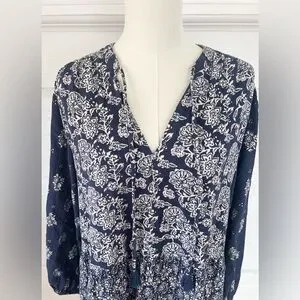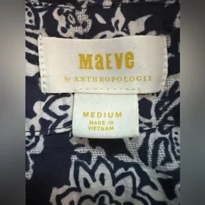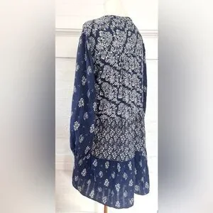 Anthropologie Maeve Carlita Tierd Tunic Dress Cotton Blue Floral Mini Bo…
