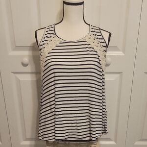 This relaxed tank top from Mossimo Supply Co. features a striking grey and white striped pattern with a sleeveless design. bundle of two tops. one striped one solid with beautiful lace up back. 2 for 1 price