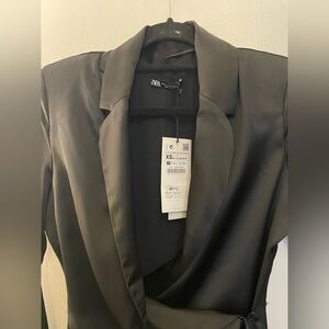 This elegant black wrap dress is perfect for any occasion. Its sleek design offers a flattering fit, making it a must-have in your wardrobe. Missing the button inside of the wrap and a little imperfection as per the pic ( barely noticeable). Never worn