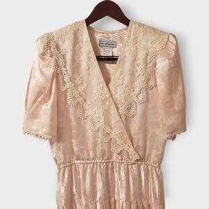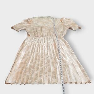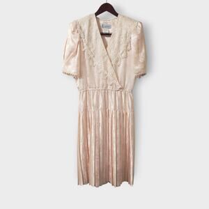 Vintage Scott McClintock Jacquard Lace Pleated Dress Shiny Pink Sz 10 Romance