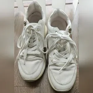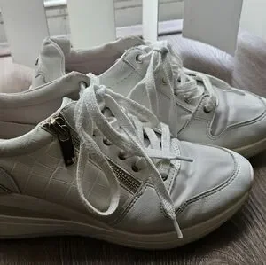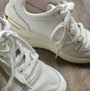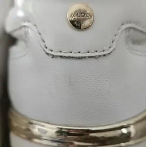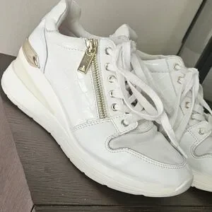 These wedge sneakers with gold accents are from ALDO. In fair condition.