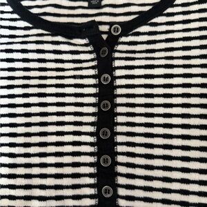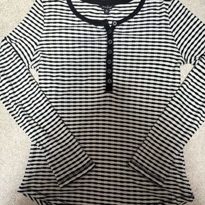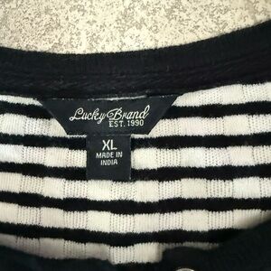 This Lucky Brand features a classic black and white color scheme with long sleeves. The buttoned design offers a sleek and versatile style, perfect for all occasions. Super comfy. In excellent condition only worn a few times. Pit to pit 19”. This top has stretch.
