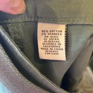 Cotton Spandex blend olive green utility-style shorts with front patch pockets with decorative button details and a visible seam structure.