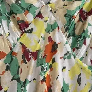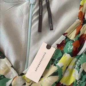 Embrace elegance with this stunning floral print dress by Anthropologie. Perfect for any occasion, it features a vibrant mix of colors that add a touch of sophistication to your wardrobe. It has lining inside with a hidden 22” zipper.