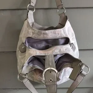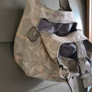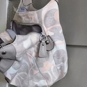 Coach Pink and Gray Shoulder Bag with Slouchy Hobo Design