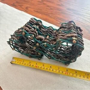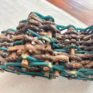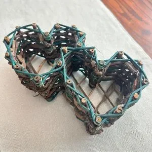 This Vintage two heart shaped woven twig grapevine Wall Decor basket is a charming addition to any room. The farmhouse style wall basket features a medium size and a brown color, perfect for all occasions. Made of wood, this unique piece is suitable for wall decor and adds a touch of rustic elegance to your space with its heart-shaped design.