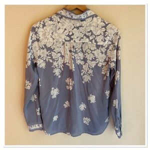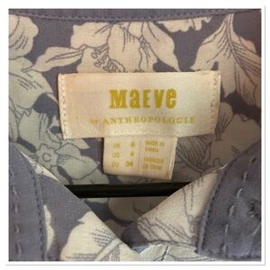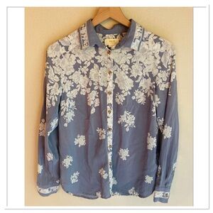 Anthropologie Maeve Rosalee Silk Button Up Front Shirt Floral Blue White Size 4