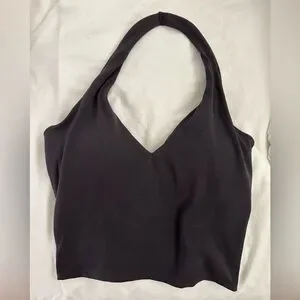 A mid-length, halter neck vest