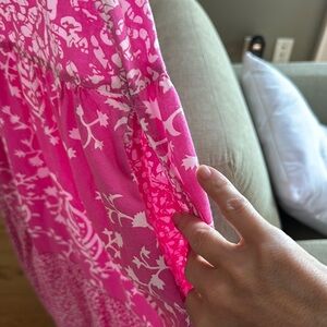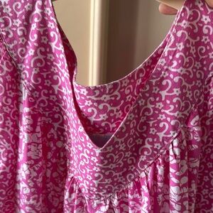 Chic pink and white dress with a flowing design. Perfect for casual outings. Spring vibes all over