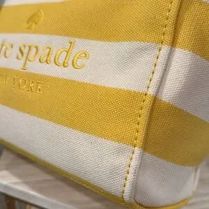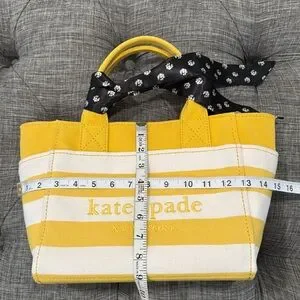 Kate Spade Bag Yellow White Striped Canvas Logo Small Tote Bag