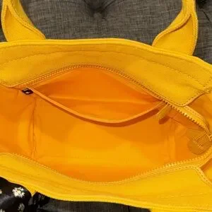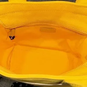 This vibrant yellow tote from Kate Spade is crafted from durable canvas, featuring a structured design with elegant logo. Its spacious interior makes it ideal for everyday use, while the bold color adds a touch of style to any outfit.