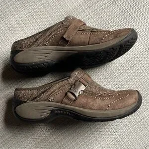 Merrell Encore Sidestep J66626 Brown Leather Slip On Mules Shoes Women's Size 6.5 very good condition