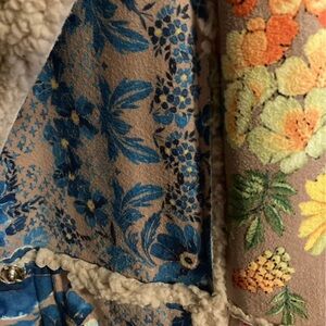 Experience the perfect blend of comfort and style with designer Johnny Was Teddy Jacket. Crafted in a cozy shearling fabric, this jacket comes in a sophisticated tan and blue color palette, making it a versatile addition to your wardrobe. Ideal for cooler days, it offers a chic and relaxed fit that pairs effortlessly with any outfit. XL size 12/14. Shipping extra. South Beloit location.