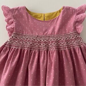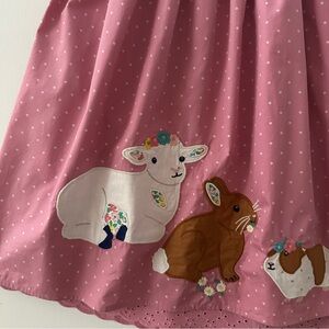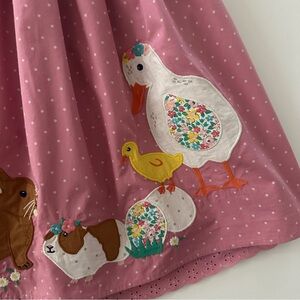 Mini Boden Girls 7-8 Pink Smocked Easter Dress Bunny Eggs Duck Sheep Spring