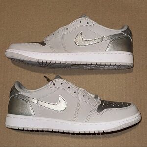 Nike Air Jordan 1 Retro Low OG Shoes Gray Metallic Silver CZ0790-002 Men's NEW