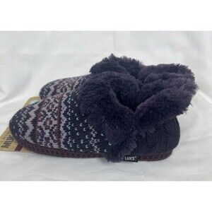 MukLuks Women's Slippers Crochet Faux Fur Lining Purple Cable Size Small 5-6 NEW