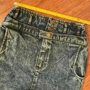 80s Vintage Weathered Blues Acid Washed Jean Skirt Hi Waisted Women’s Size 9/10